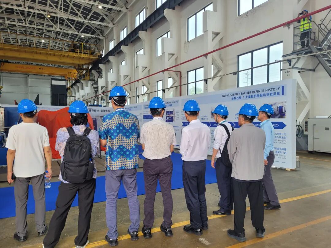 值得一提的是,此次FDM有幸受到WMF 2025参展商德国迪芬巴赫集团DIEFFENBACHER的邀请,前往其集团成员之一的上海人造板机器厂有限公司参观,并参与了迪芬巴赫DSR新型热磨机产品推介会,能够有机会深入了解迪芬巴赫DSR热磨机高产量、低能耗、易维护、高度模块化设计、可为MDF板的生产产出匀细优质纤维等多方面的技术特点。此外,在现场,工作人员还向我们依次展示了多款核心设备,每一台机器都彰显着德国工业的精湛工艺与创新智慧,与此同时,该企业还能够为客户提供全面技术服务与项目解决方案,展现出全球领先的行业实力与服务担当。