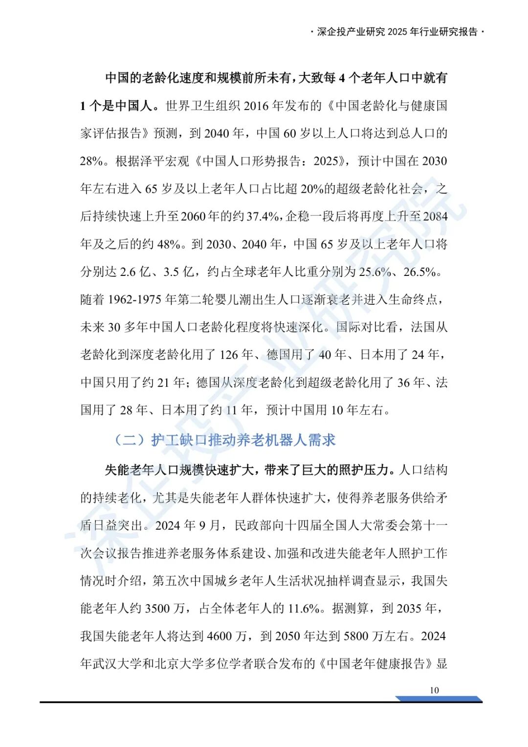 此外,报告中未深入讨论的是“人机关系”的伦理困境。老年人是否愿意接受机器护理?情感陪伴能否被算法真正替代?在推广机器人的同时,我们是否忽略了人文关怀的价值?科技可以延伸人的能力,却不应成为逃避责任的借口。