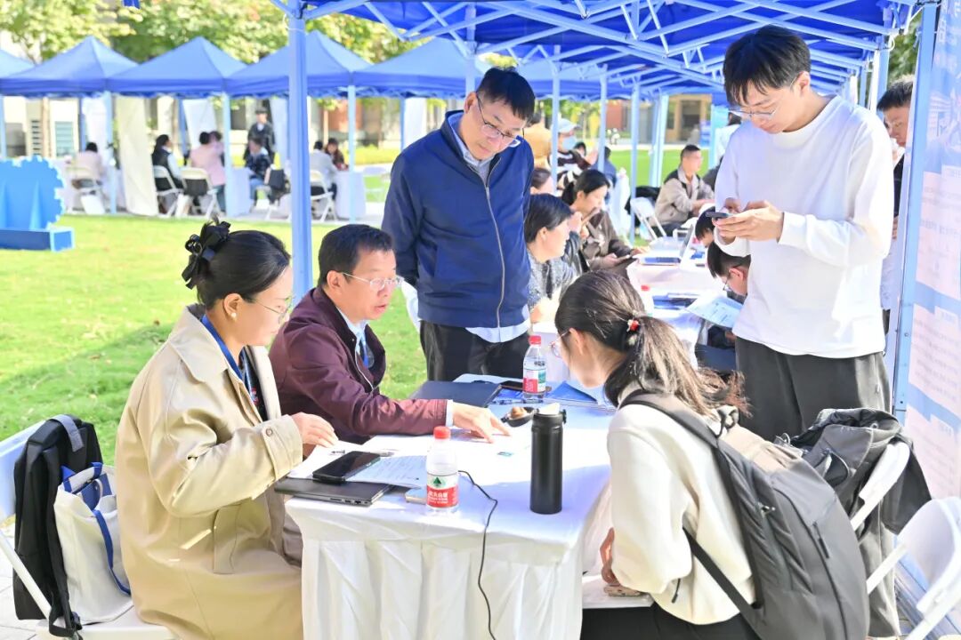 招聘会现场,多家招聘单位为前来咨询的学生准备了宣传材料,并细致讲解企业概况、岗位背景与招聘要求。有求职意愿的同学主动了解各类信息,同时提交个人简历。同学们与招聘单位负责人展开直接沟通,交流过程中,学生们深入了解了企业的招聘流程、薪资福利、应届生培养体系、职位晋升路径等内容,不仅更全面地掌握了企业概况与未来发展前景,也对自身的职业定位形成了更为清晰的认知。