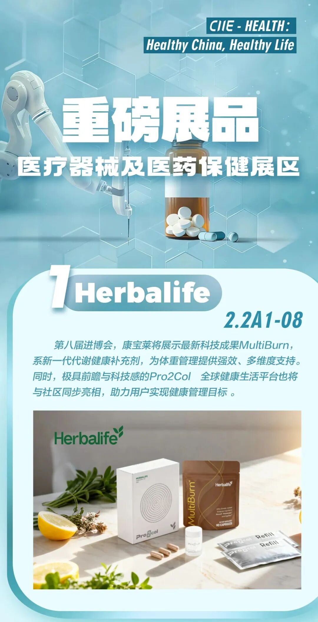 医疗展区2.2馆设健康营养专区,首次推出“主动健康”理念,展品优选全球天然原料、萃取草本营养,引导人们通过全面营养素补充的“主动健康”策略,提高人体健康力和生命活力,实现人体机能增强、疾病预防、慢病逆转,进而保持健康状态,实现“主动健康”,助推大众健康从“被动应对”向“主动管理”转变。