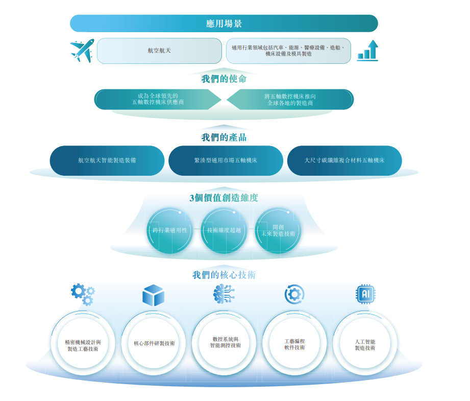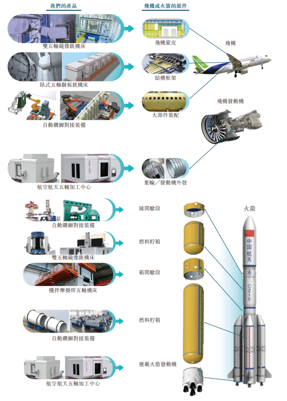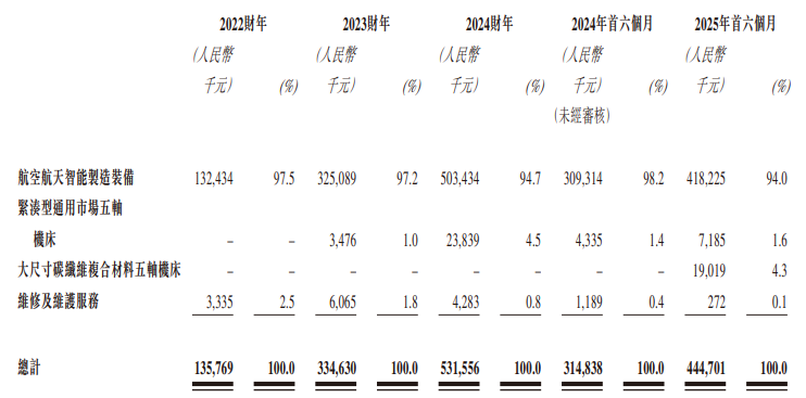 于往绩记录期间,公司的收入主要来自(i)销售航空航天智能制造装备,相对较小一部分来自(ii)销售紧凑型通用市场五轴机床(iii)销售大尺寸碳纤维复合材料五轴机床及(iv)提供维修及保养服务。