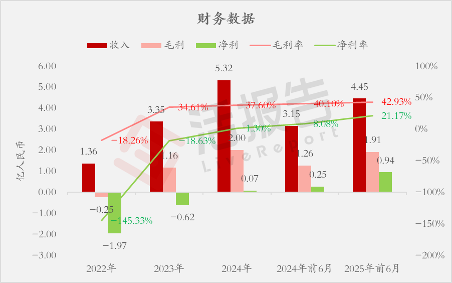 收入分别约为人民币1.36亿、3.35亿、5.32亿、3.15亿、4.45亿,2025年前6月同比+41.25%;