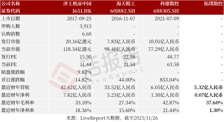同行业IPO可比公司:津上机床中国、海天精工、科德数控