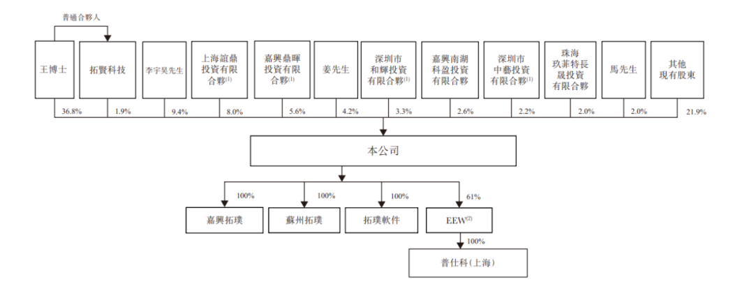 王宇晗博士直接持股约36.82%,在员工持股平台拓贤科技的1.93%,合计持股38.74%;