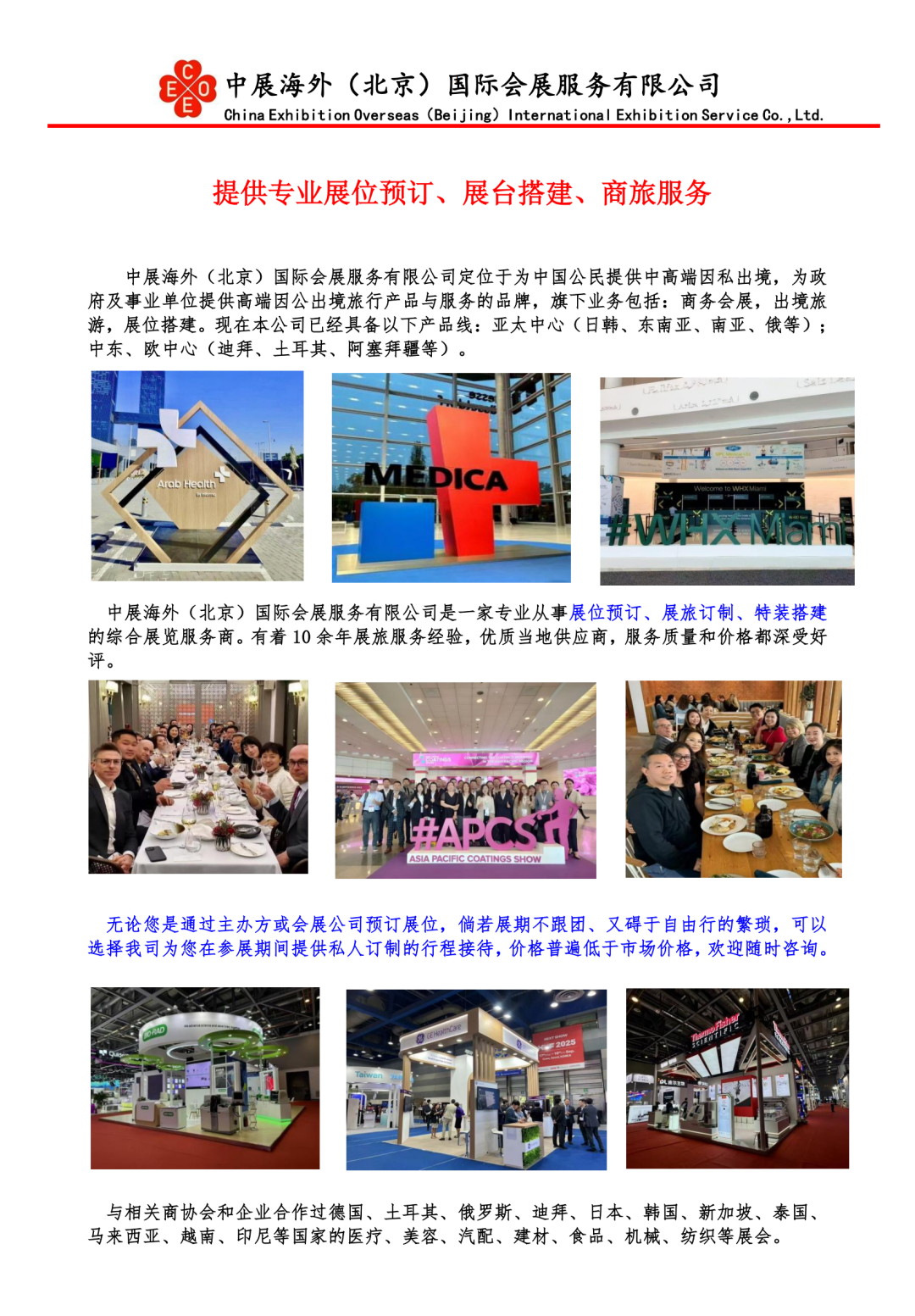 本届展会展出内容涵盖医疗设备与仪器、诊断设备、手术急救装备、医用敷料与耗材、康复理疗产品、数字化健康系统、实验室设备、制药机械、家庭保健产品以及医疗IT解决方案等全产业链领域。除了实体展示,展会还将举办多场高端会议、创新发布会和行业论坛,聚焦医疗科技前沿与市场趋势。