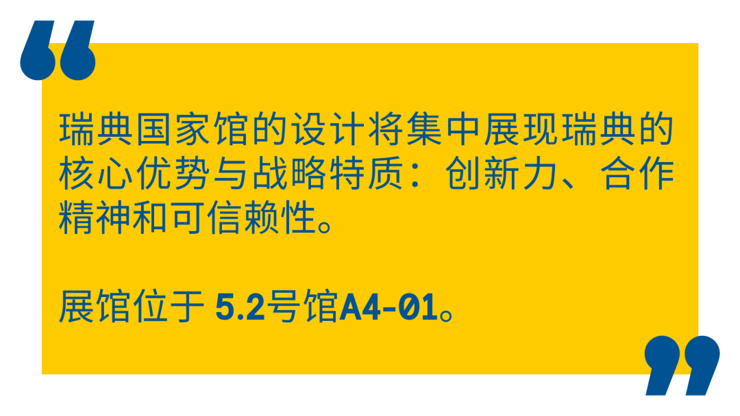 进博会期间,馆内还将举办多场主题活动,进一步介绍瑞典在各个领域的重要发展和中瑞合作潜力。