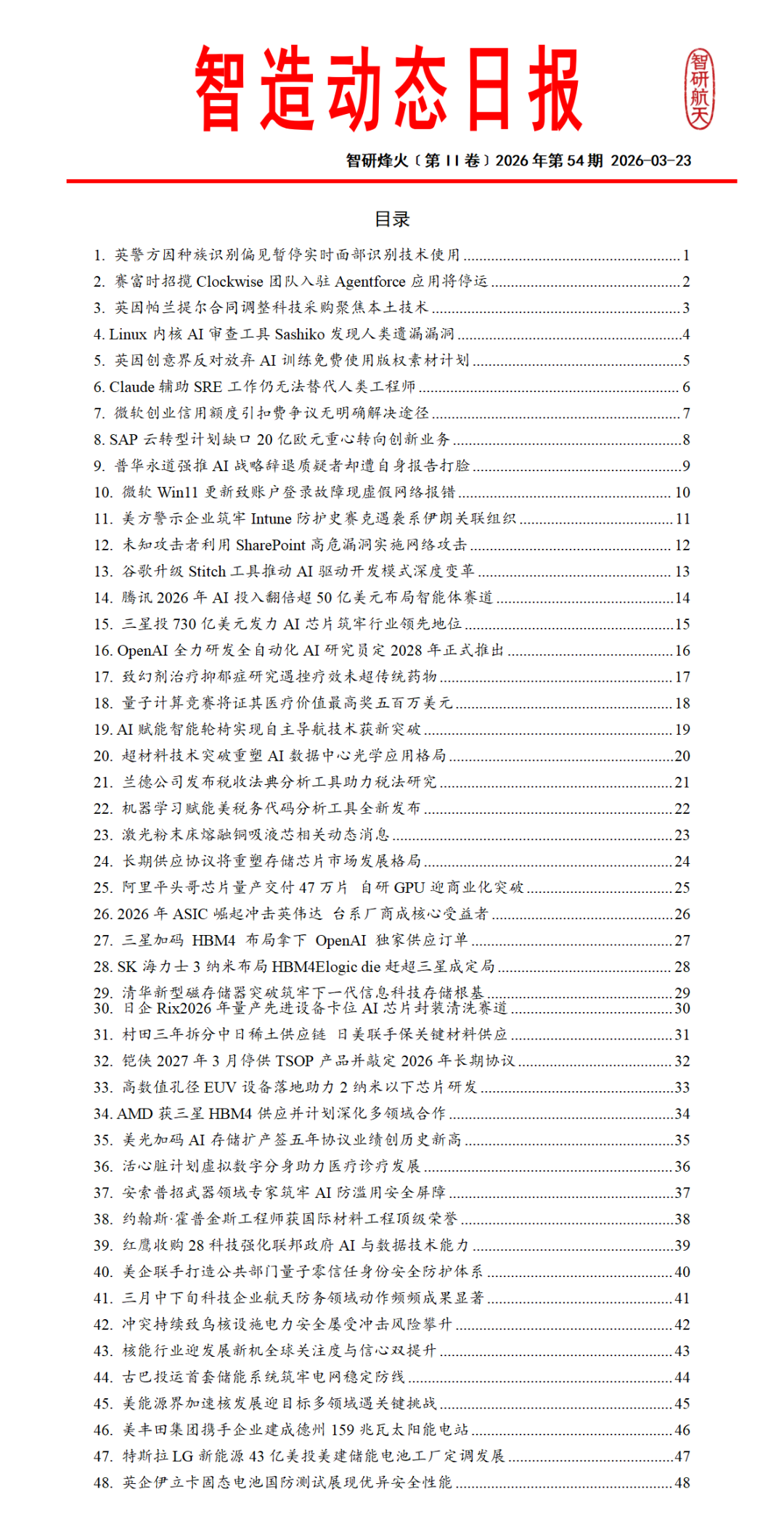 聚焦全球智能制造领域的权威情报产品,每日精选航空技术与应用、人工智能、工业机器人、增材制造、芯片工艺等核心技术突破与产业动态,以结构化、可编辑的文档形式呈现。内容涵盖技术解析、企业战略及政策影响,依托资深专家团队及强大的开源情报处理能力,助力企业快速捕捉技术趋势与市场机遇,把握智造脉搏,引领产业升级。