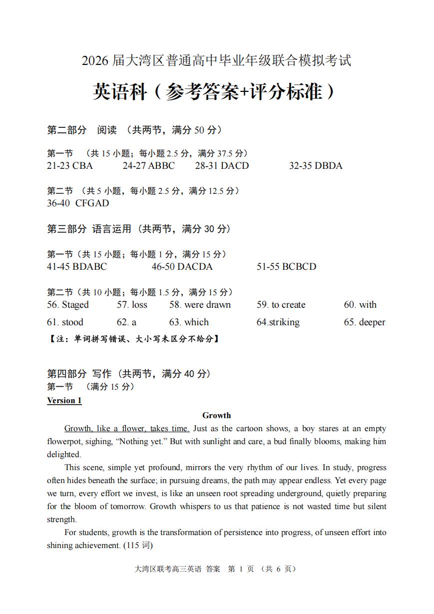 广东省大湾区2026届普通高中毕业年级联合模拟考试英语试题及答案