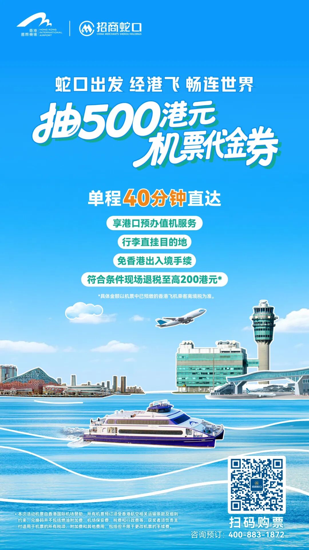 近期香港国际机场飞机乘客离境税,退税豁免提升,乘坐高速客轮【深圳蛇口-香港机场】航线,无需自己上传资料,下船后即可直接在离境税退款柜台,现场领取至高200港币*退税哦!