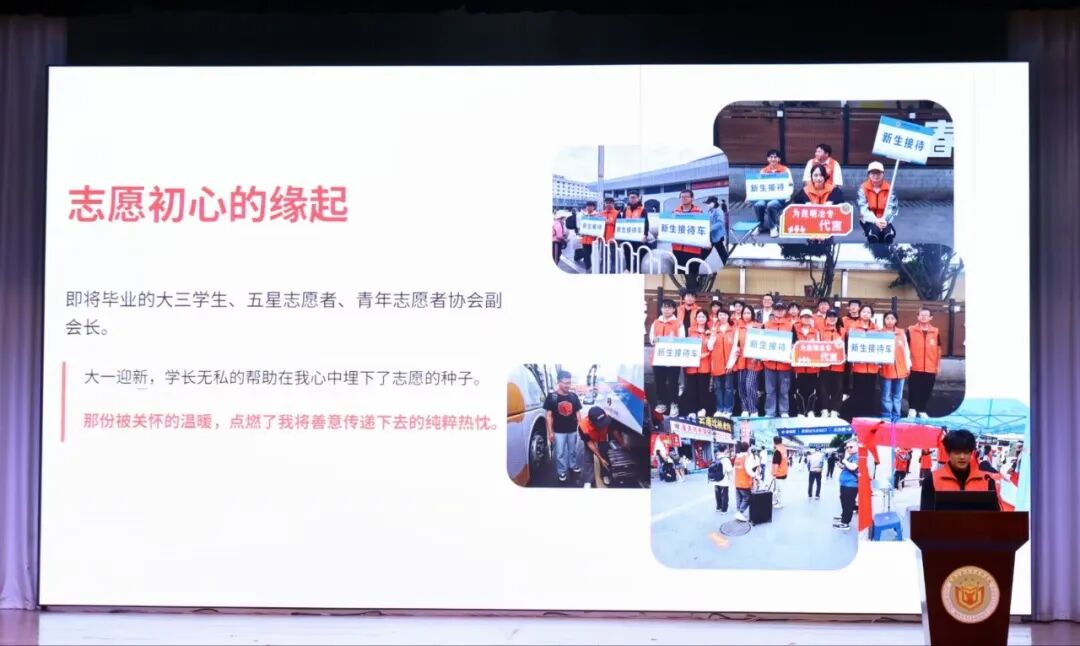 “实践归来话成长”分享环节是本次活动的核心亮点,6名来自不同志愿服务领域的优秀志愿者代表依次登台,用真实经历讲述志愿故事,传递青春感悟。