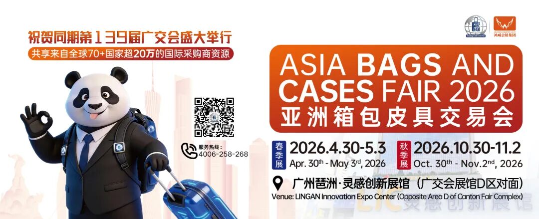 2026亚洲箱包皮具交易会,值得世界期待。诚邀全国箱包、皮具、设计师、渠道商与专业人士,齐聚广州琶洲·灵感创新展馆,共赴这场行业盛会,共拓中国箱包品牌出海新征程!