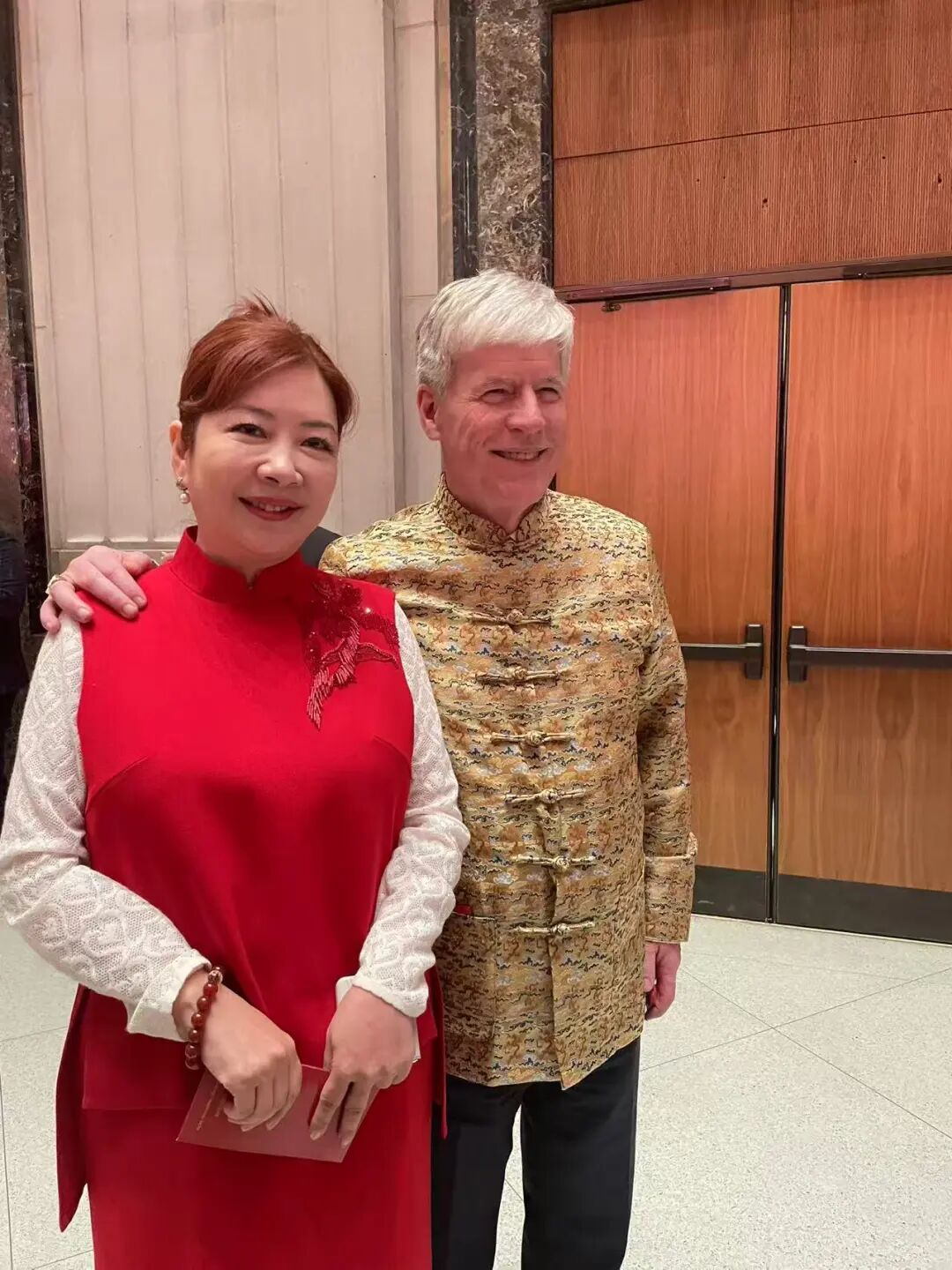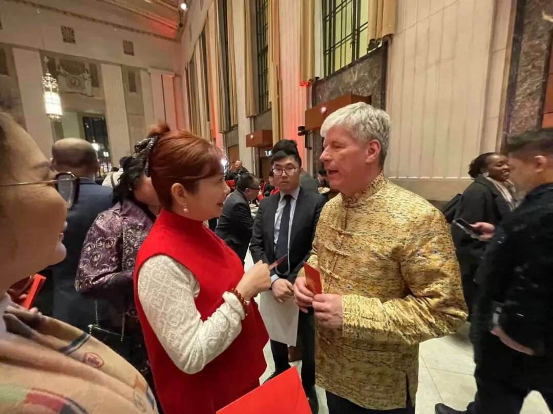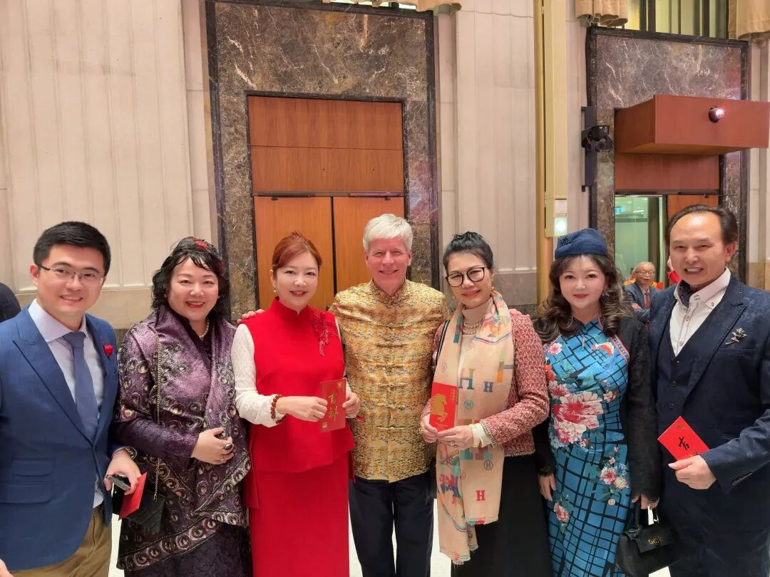 活动期间,深圳总会名誉主席、加拿大中国高校校友会联合会会长铁木尔先生以一身喜庆“财神”装扮亮相,为大家送上马年新春祝福。齐佳主席与“财神”亲切合影,寓意吉祥,为总会即将到来的十周年庆典增添了浓浓的喜气与美好期许。