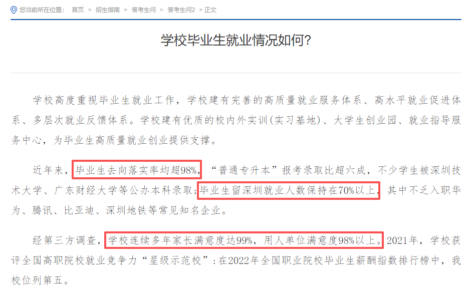 近年来毕业生年均就业率保持在 97% 以上,22% 能进华为、腾讯这类行业龙头或规模以上企业,25% 能升学深造,这个数据放在同类院校里相当能打!
