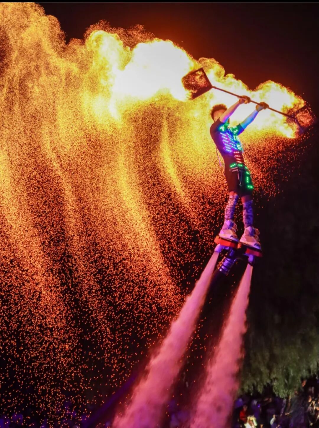 🎆水上飞人带着火壶腾空的瞬间,水花混着火星子溅起来,手机根本拍不出万分之一震撼,现场尖叫此起彼伏