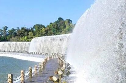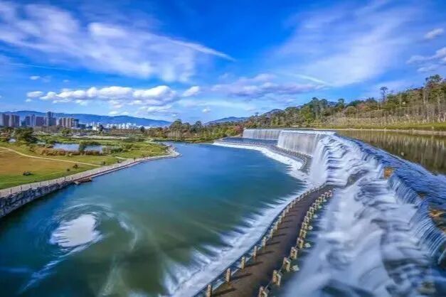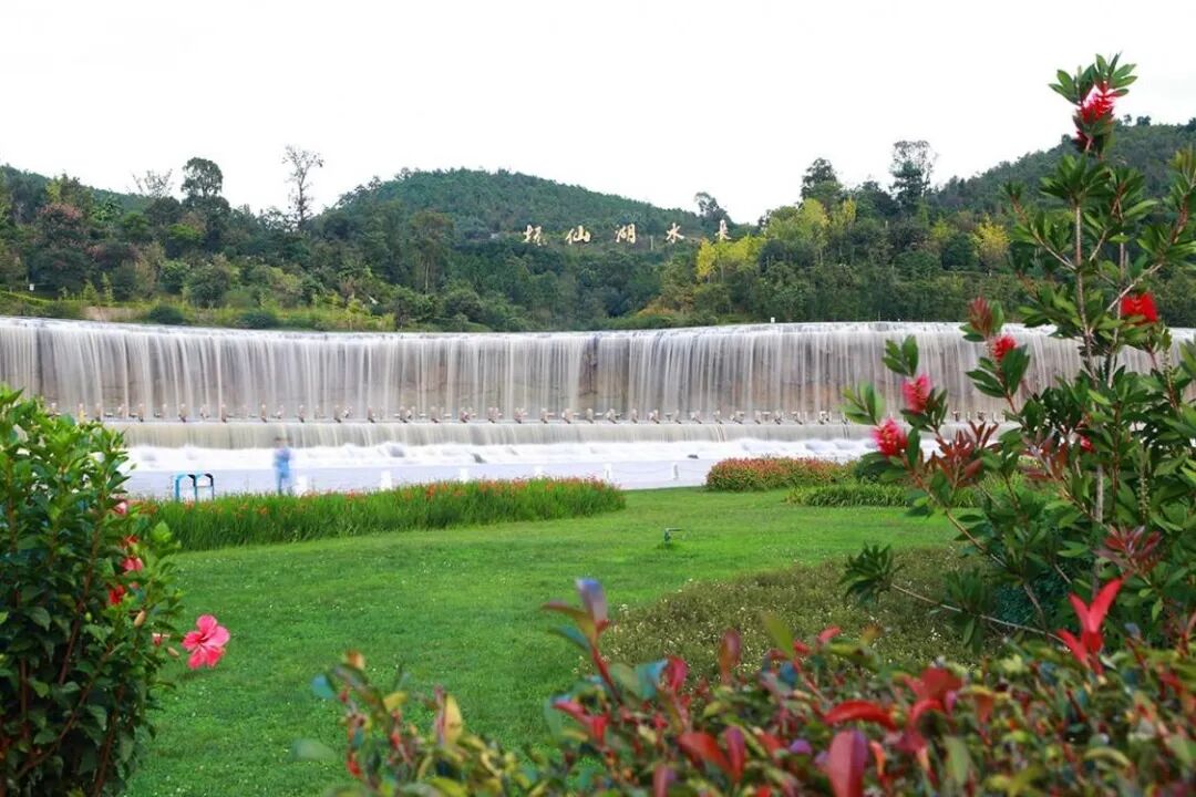 玉溪出水口瀑布是玉溪市人工打造的标志性景观,位于红塔区环山路玉溪园林植物园内。玉溪出流改道水利工程主要包括长23公里的引水工程、50亩挺水植物带和278亩人工湿地等。结合出流改道水利工程修建的瀑布宽约276米,高度约15米,采用来自百里外抚仙湖的澄澈神水和星云湖水源循环系统,形成壮观的水幕。
