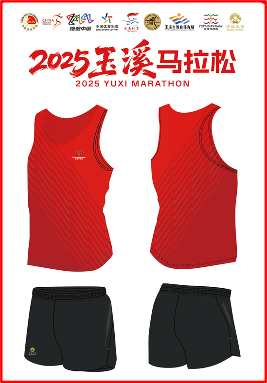 2025玉溪马拉松赛的马拉松项目参赛服,以炽热红色为主色,既象征跑者的一腔热血,更与“中国红”完美呼应。红色背心与黑色短裤的组合,是热血与沉稳的交响。