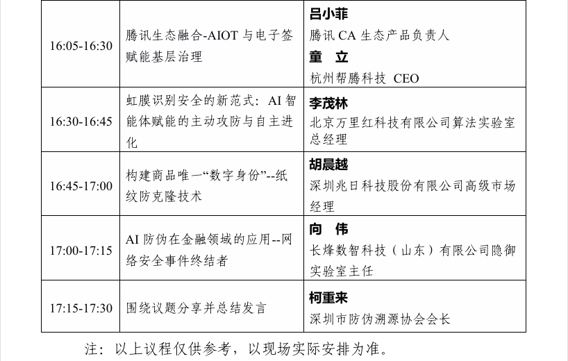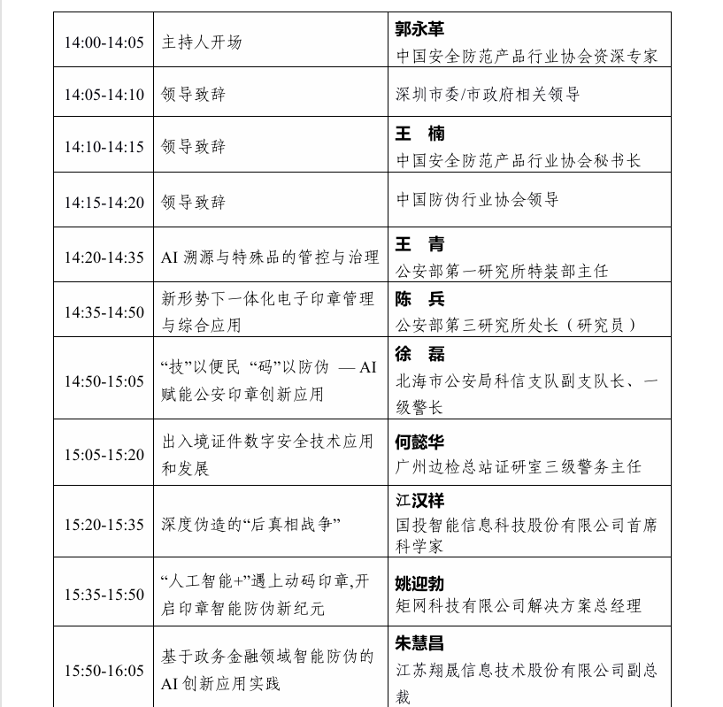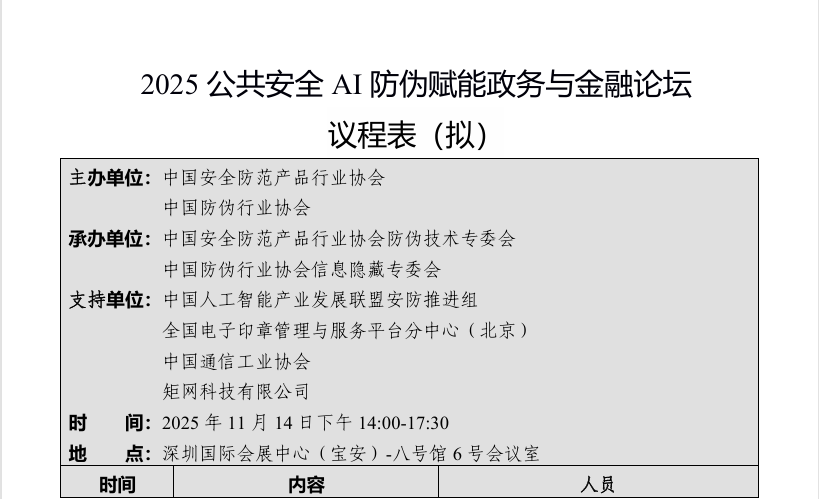 附 件:2025公共安全AI防伪赋能政务与金融论坛议程表(拟)
