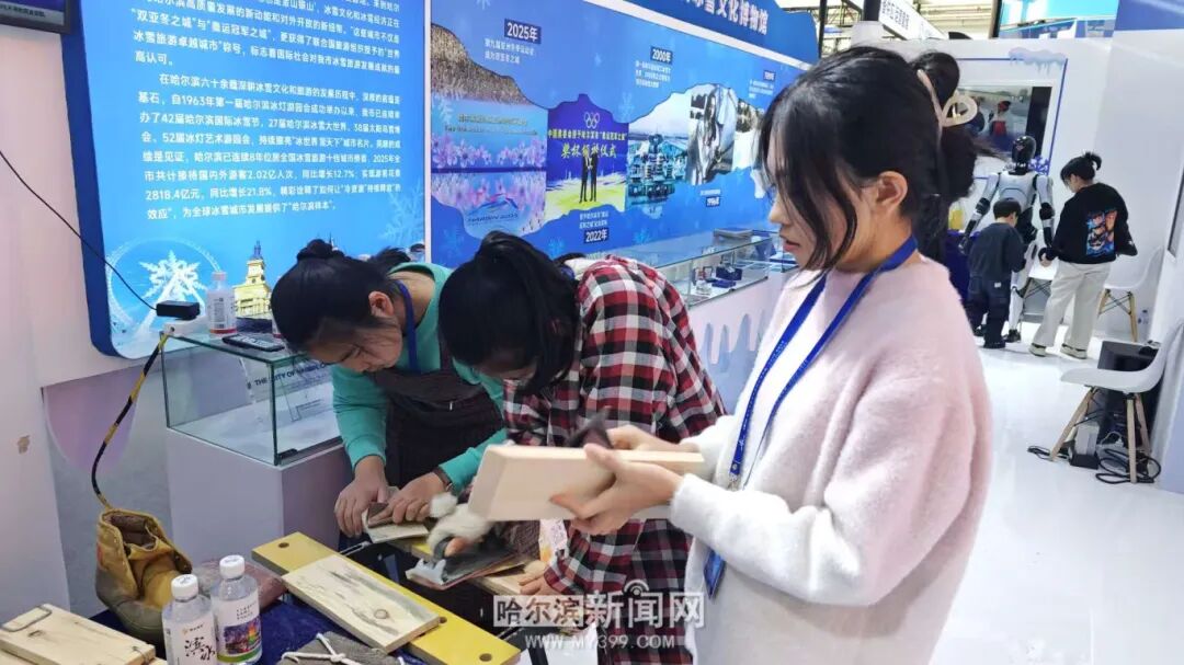 脚滑子是传承数百年的传统冰雪运动器具,是东北民俗文化的典型代表。在2026年哈尔滨国际冰雪经济博览会上,冰雪民俗活动展区脚滑子制作体验区吸引了很多观众驻足观看、体验。更多观众们通过展区了解到,作为市级非遗项目的脚滑子所蕴藏的东北人民娱冰乐雪智慧。