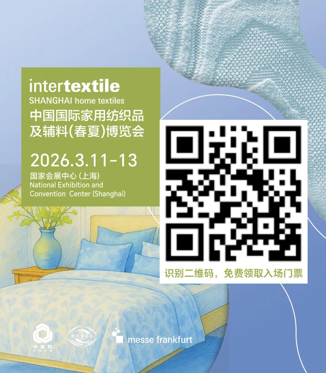 春潮涌动,万物焕新。2026中国国际家用纺织品及辅料(春夏)博览会(以下简称“2026intertextile春夏家纺展”)将于3月11-13日在国家会展中心(上海)盛大启幕。