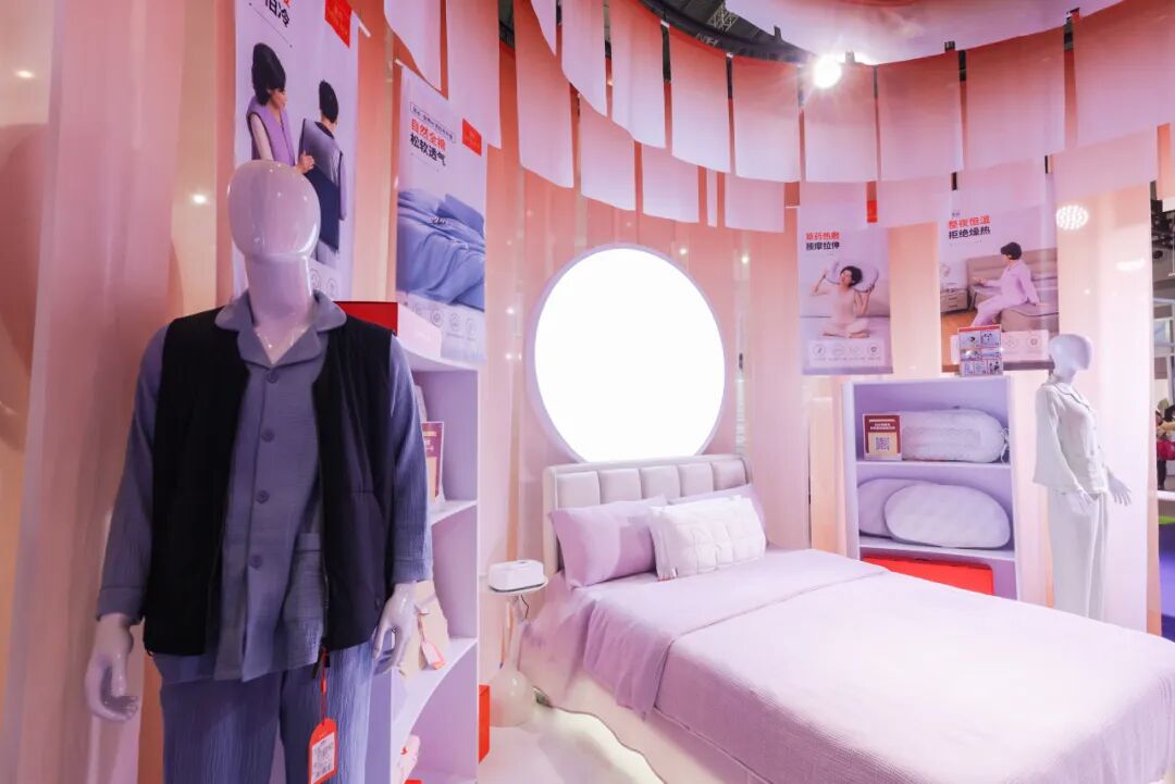 作为行业趋势发布的核心阵地,本届展会围绕NextGen科技新生力、Palette设计新势力、Connector产业融合力、Go-Green绿色循环力四大活动主题板块,打造了一系列高规格、专业化的配套活动。其中,“2026助眠生活馆”特色展区成为亮点,该展区基于《2026助眠力洞察报告》的科学指导,通过五大主题场景与两大专题空间,系统呈现冷暖调节、材质创新、香氛助眠及压力舒缓等维度的助眠家纺解决方案,引领行业从产品功能向睡眠生态升级。