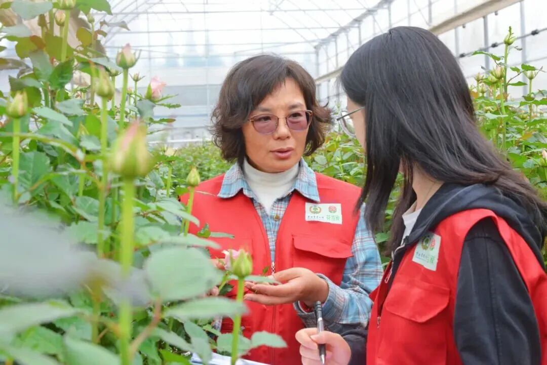 ▲云南农业大学教授赵雁在姚安花卉科技小院开展实地教学