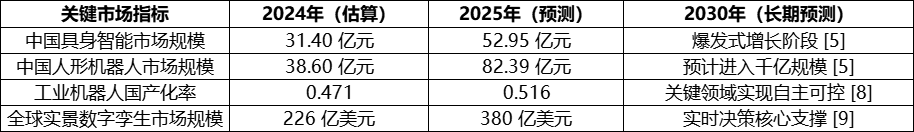 2025年中国具身智能市场规模预计达52.95亿元人民币,占全球约27%的市场份额;而人形机器人市场规模预计达82.39亿元,占全球份额的50%左右 [5]。这种显著的全球份额优势得益于中国完善的硬件供应链生态与快速迭代的算法能力。随着DeepSeek等国产大模型在端侧推理能力的爆发,机器人“大脑”与“物理实体”之间的交互正从简单的程序执行演变为实时的动态决策,实现感知、认知、决策与行动的一体化 [6, 7]。