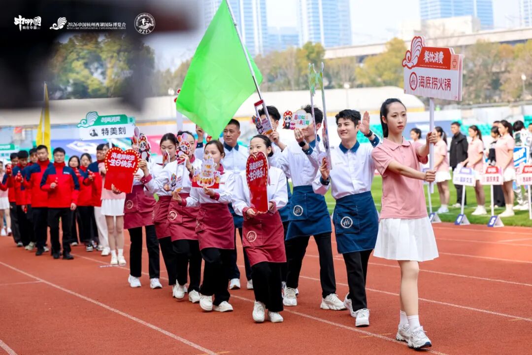 本次活动上,一场独具特色的企业代表团入场仪式成为亮点。由杭州社零头部企业、重点商贸企业、消费“新三样”企业等组成的“杭州新消费”主题方阵,围绕科技新品、外贸优品、国风潮品、焕新消费、直播电商、即时零售、餐饮消费、时尚消费、情绪消费、商文旅体融合十大板块依次登场,全面展现杭州新消费领域的蓬勃活力与硬核实力。
