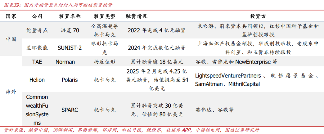 1)资本开支快速增长。据《The global fusion industry in 2025》,2025年全球核聚变行业融资规模达到97亿美元,2021~2025年CAGR达到50.32%,科技巨头英伟达、微软、谷歌等均下场布局核聚变。国内方面,中国聚变公司成立并获7家央国企合计投资超百亿,诺瓦聚变能源破纪录完成5亿元融资。