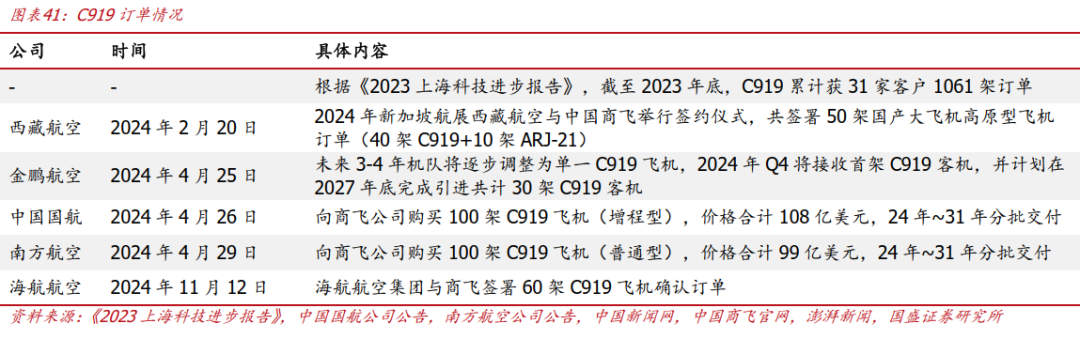 国产大飞机产业化开始提速。C919订单计划交付周期跨越十四五-十五五-十六五,根据《2023上海科技进步报告》,截至2023年底C919累计获得1061架订单,考虑后面国内航空公司订单,目前C919订单数量至少1391架,按照2025年12月24日汇率单架价值1亿美元对应7.01亿元人民币,目前在手订单金额接近万亿元。