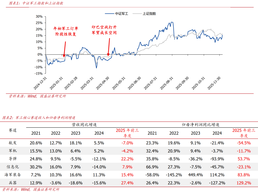 回顾2025年:“十四五”收官之年,市场原预期完成“十四五”积压订单从而基本面反转,然而全年来看军工订单仍受到行业影响不及预期。但在2025年印巴冲突等地缘事件影响下,军贸打开行业长期成长空间。总体来说,2025年延续了“十四五”总体上行业影响,基本面发展较为一般,低于预期。