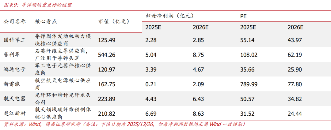 导弹:国科军工、菲利华、新雷能、楚江新材。