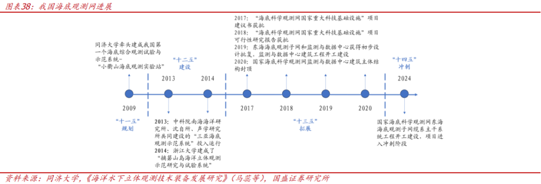 我国海底观测网已进入建设阶段。我国的海底观测网“十一五”时期规划,2017年“海底科学观测网国家重大科技基础设施”项目建议书获批,由同济大学牵头中国科学院声学研究所共建;2024年东海海底观测子网缆系主干系统工程正式启动,标志着项目进入建设阶段。