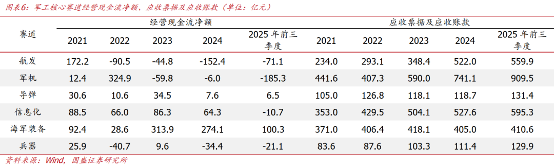 装备订单角度:中国军费保持持续增长态势,国防预算由2019年的1.21万亿增至2025年的1.81万亿元,但是2023~2024年军工行业受到行业影响业绩表现不佳,应收票据及应收账款明显提升,企业经营现金流净额也出现大幅下滑,这表明产业链现金流传导不佳。2025年导弹、信息化、兵器等赛道基本面已经开始改善,我们认为2026年作为“十五五”开端之年,行业影响因素或有望得到解决,届时军工企业订单将大规模落地,收入、利润将实现快速增长,现金流也将实现大幅改善。