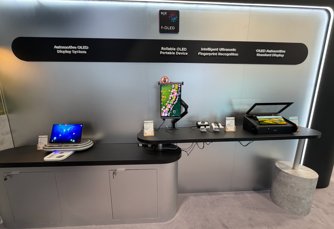 生态合作方面,京东方精电的表现十分活跃。现场能看到他们与超40家全球顶级豪华汽车企业、产业链合作伙伴及消费电子企业展开深度对接,还展示了11款联合共创的产品。