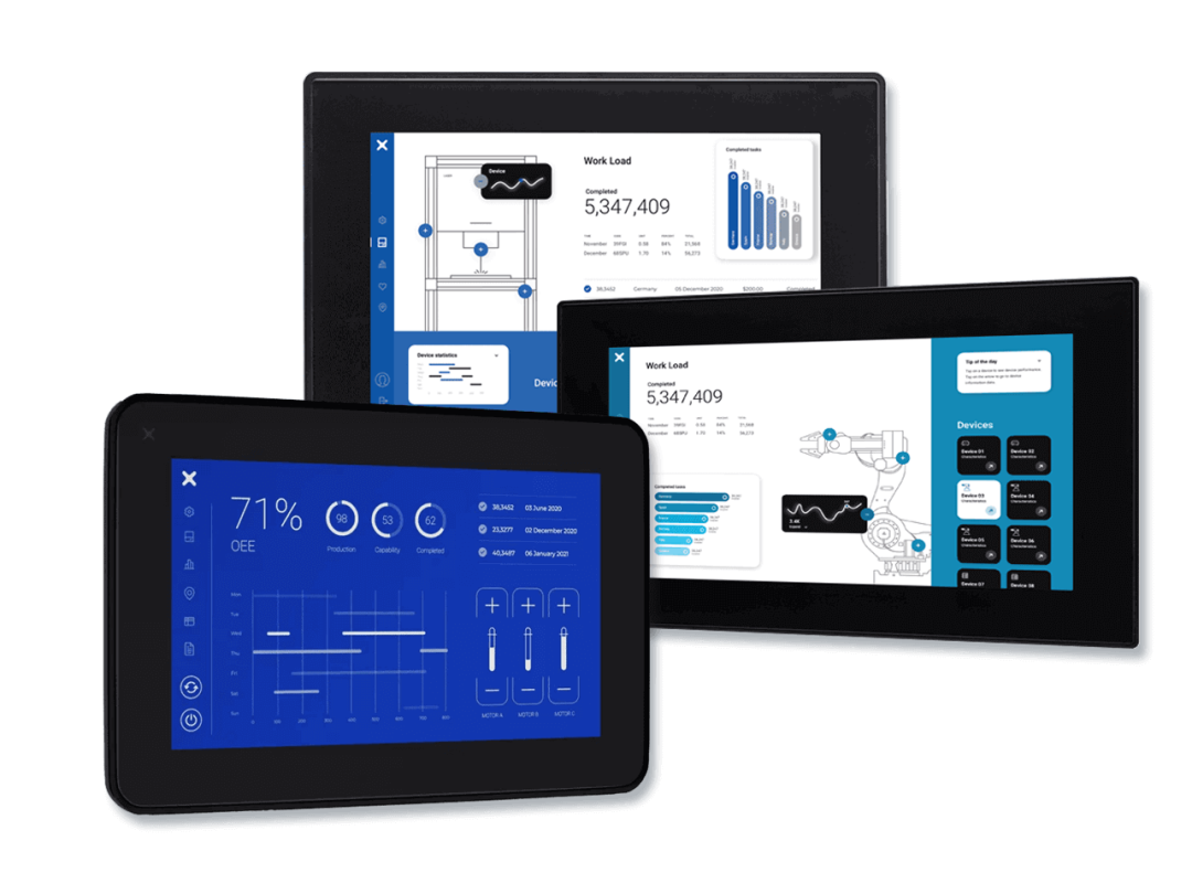 宏集EXOR物联网HMI&网关方案,将HMI、PLC和工业边缘计算功能高度集成于一体,可实现从现场到云端数据通道的所有必需功能;支持200+通讯协议和多达1万点数据标签,触控灵敏度高,适用于需要高效交互和复杂逻辑控制的场景。配合配套的软件工具链,用户能够快速完成应用开发与部署,在减少硬件投入的同时提升系统扩展性