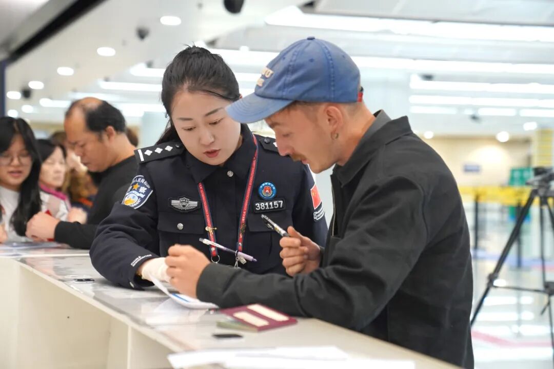 图为:国家移民管理局2024年12月17日发布公告,即日起全面放宽优化过境免签政策,将过境免签外国人在境内停留时间由原72小时和144小时均延长为240小时(10天),同时新增21个口岸为过境免签人员入出境口岸,并进一步扩大停留活动区域。12月19日,昆明口岸迎来使用该项政策的首位瑞典籍旅客。