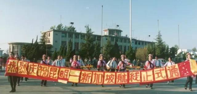 图为:1993年1月27日,昆明-新加坡航线开航。