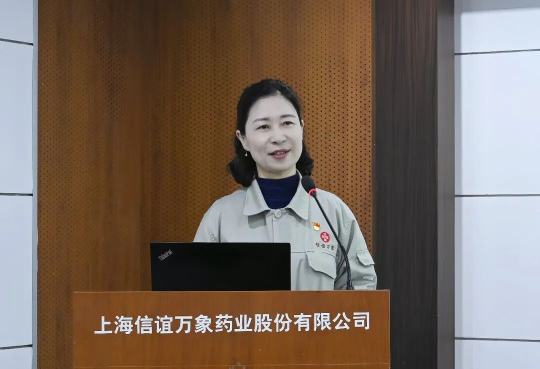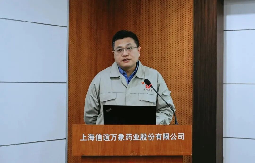 上海市模范集体负责人,信谊万象综合制造车间主任朱振羽代表先进集体发言,他分享了团队在生产管控协调、软硬件保障方面的先进经验,梳理了先进集体在持续迭代创新中,与公司各条线进行协同共进的环节途径,交流了在思想突破上的心得体会,并表达了征程开新局、再接再厉的决心与信心。
