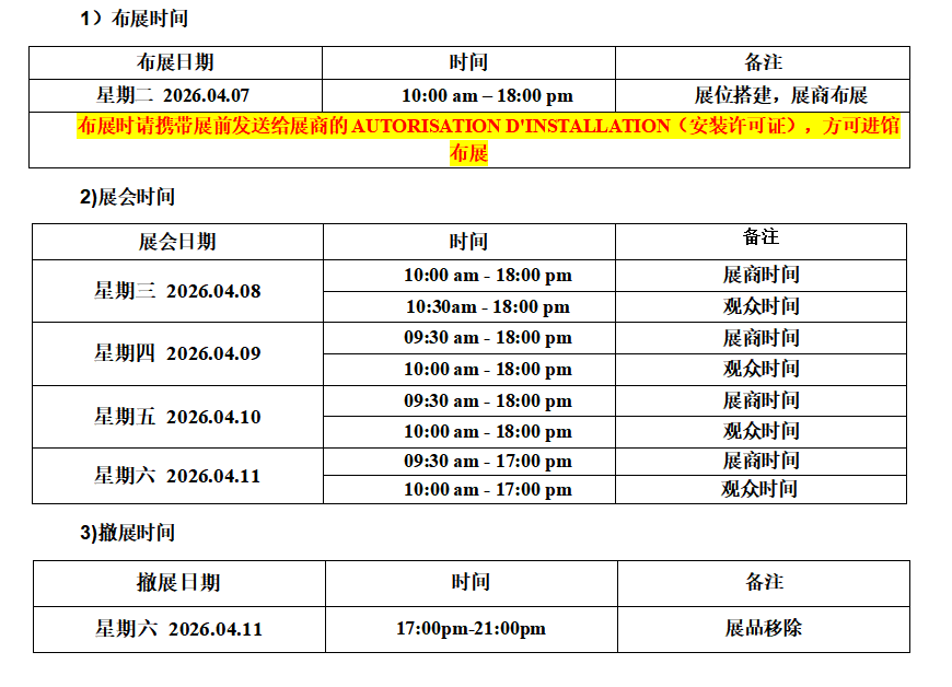 《展会时间安排》