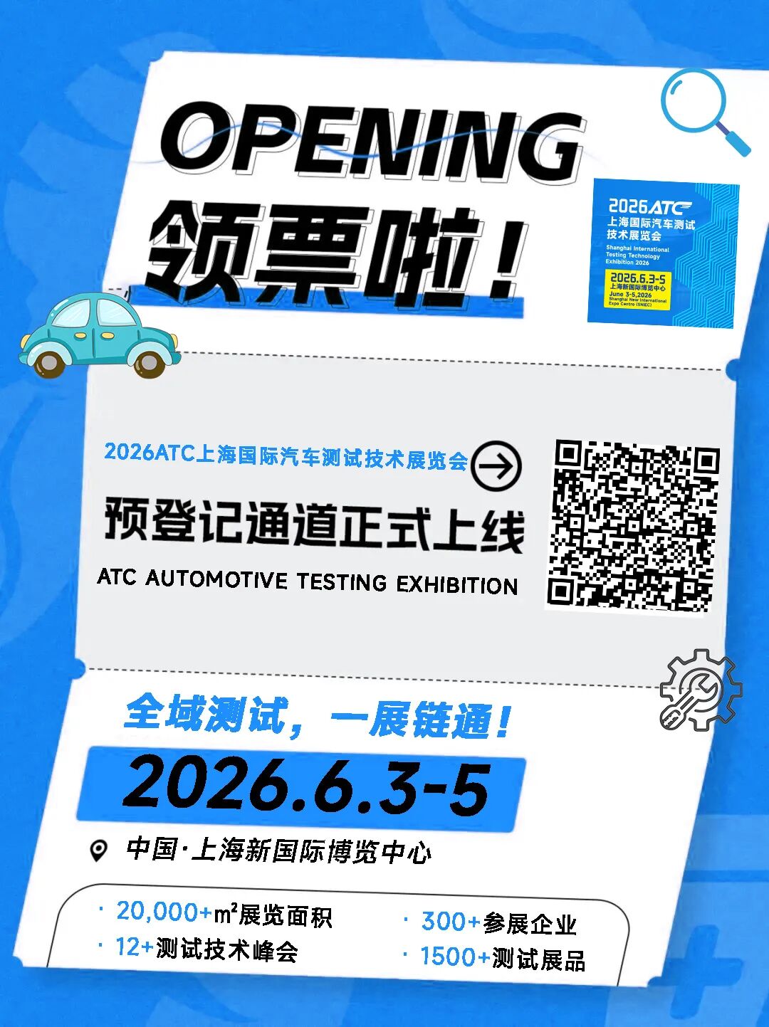 2026ATC上海国际汽车测试技术展览会(简称2026ATC汽车测试展)将于2026年6月3–5日在上海新国际博览中心隆重举办!
