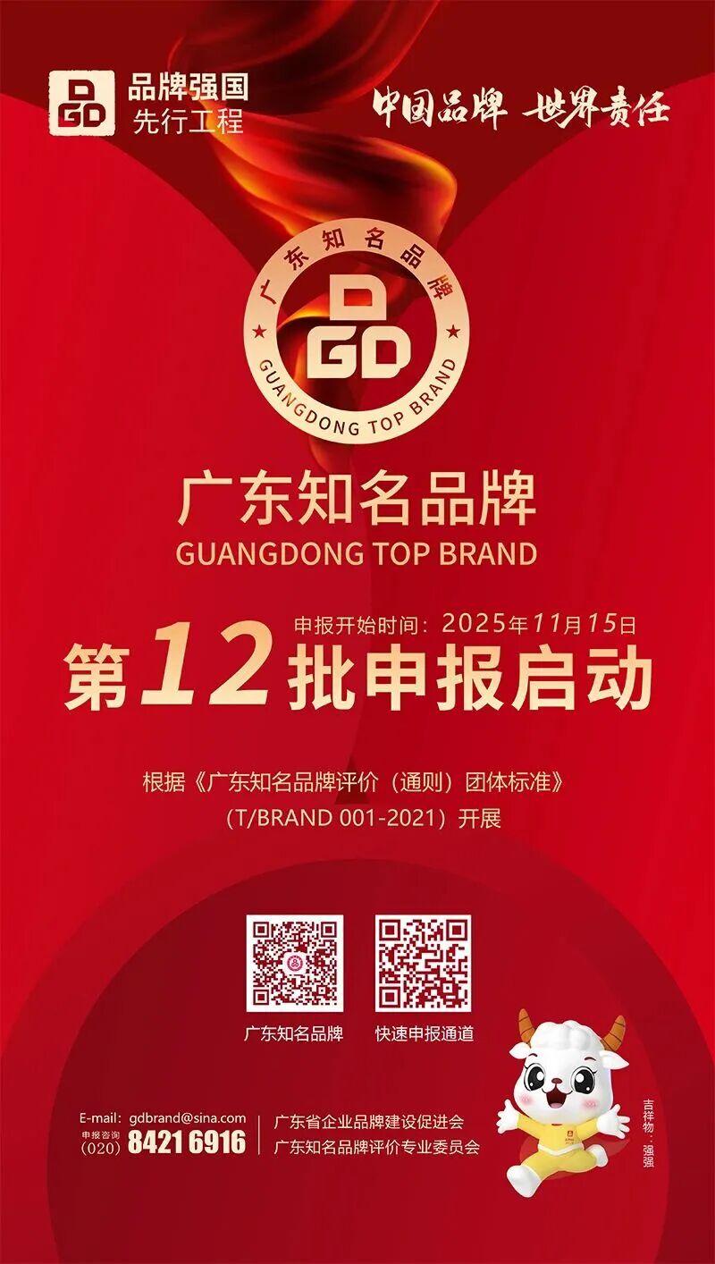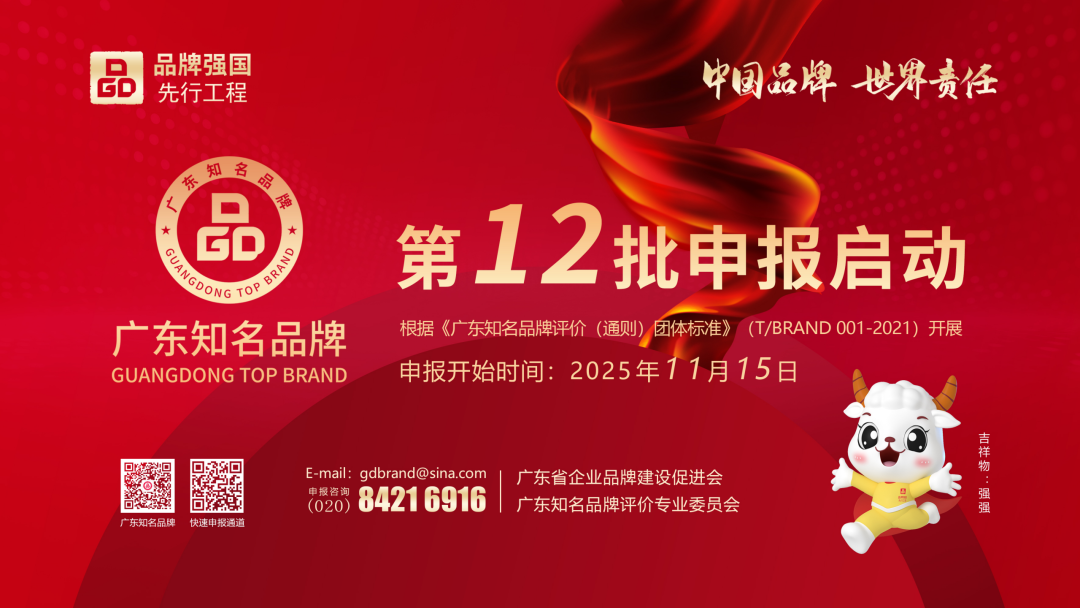 第12批“广东知名品牌”企业自主申报工作已于2025年11月15日启动,将于2026年3月中旬截止。在完成企业申报、资格审查、申报材料核查、实地抽查、行业知名度调研、公开查询、专家评审等综合评价环节后,根据广东知名品牌团体标准评价通则规定,最终获评“广东知名品牌”企业名单将于4月上旬面向全社会公示。