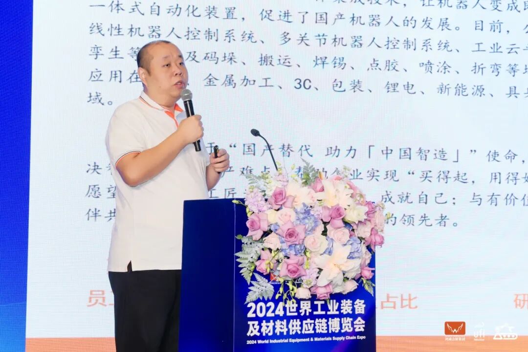 深圳市华成工业控制股份有限公司董秘杜晓磊先生带来了《基于驱控一体的机器人控制系统》的主题演讲,详细介绍了华成工业控制的技术优势和应用案例。