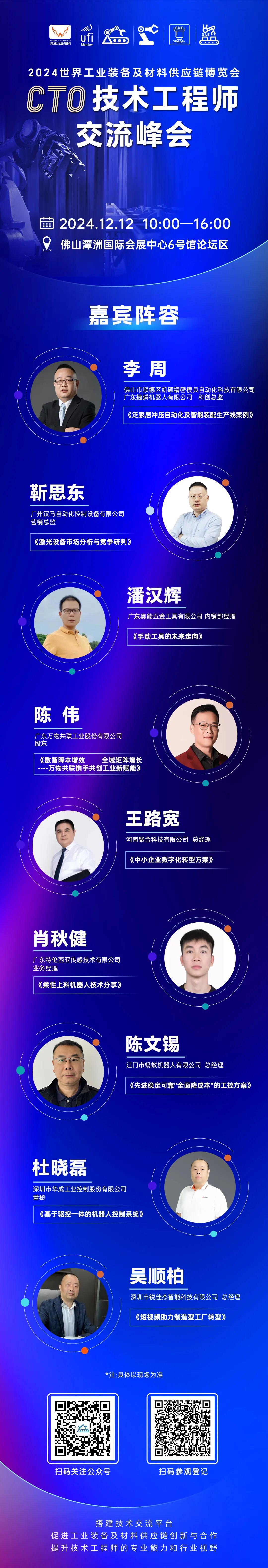 2024年12月12日,2024世界工业装备及材料供应链博览会同期举办的“CTO技术工程师交流峰会”在佛山潭洲国际会展中心成功举办。本次峰会汇聚了工业领域的技术精英,共同探讨工业装备及材料供应链的未来发展趋势,推动行业技术革新。