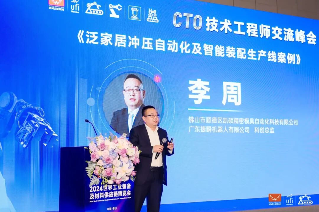 佛山市顺德区凯硕精密模具自动化科技有限公司和广东捷瞬机器人有限公司科创总监李周先生分享了泛家居冲压自动化及智能装配生产线案例,展示了自动化技术在泛家居行业的应用成果。