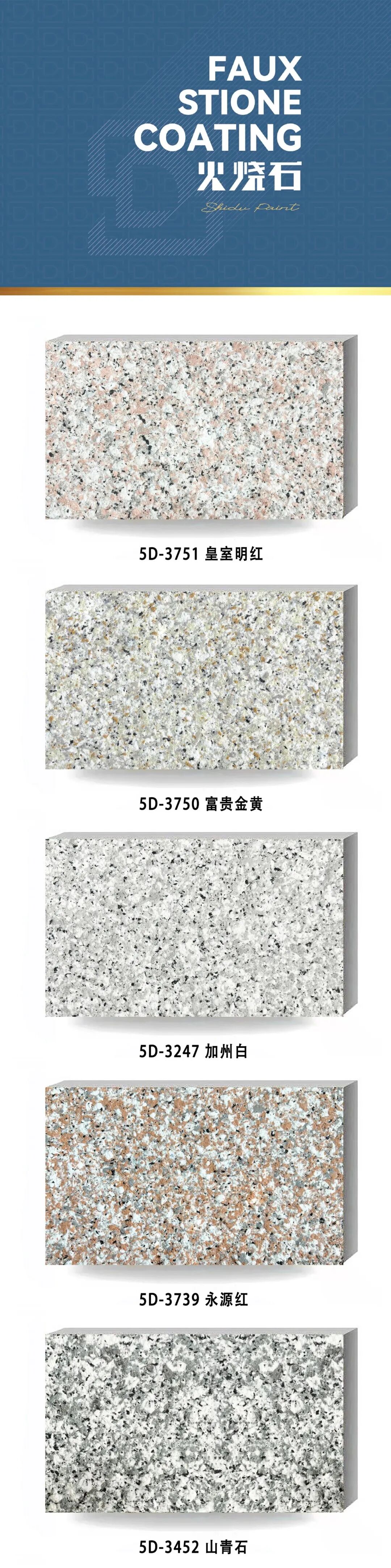5D火烧石新增皇室明红、加州白、巴西黑等十余种色号,7D景岩石则以伦敦锈石、五莲红、山青石等色系适配不同建筑风格。
