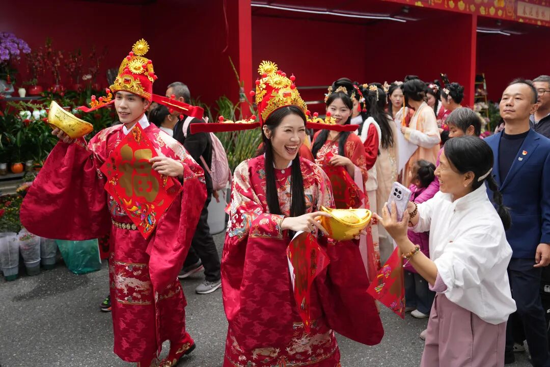 除了逛大湾区灯会,去南沙还可以逛花街、办年货,氛围非常热闹喜庆。2月10日上午,2026年南沙迎春花市在南沙街道海滨路正式拉开帷幕。