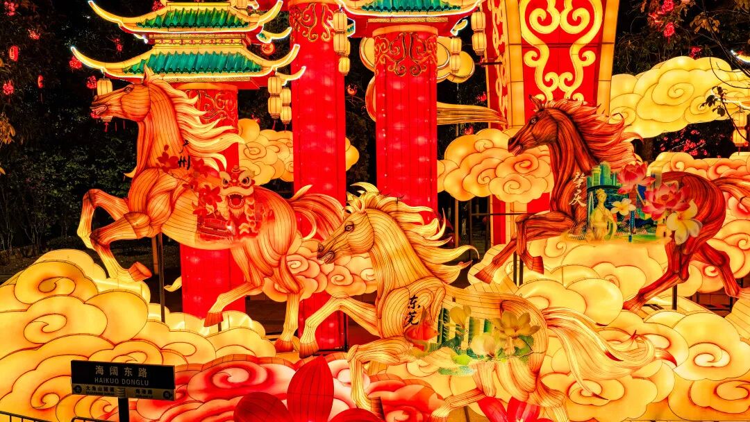 “星河驰骋·骏马腾云”展区的马年潮玩灯组。