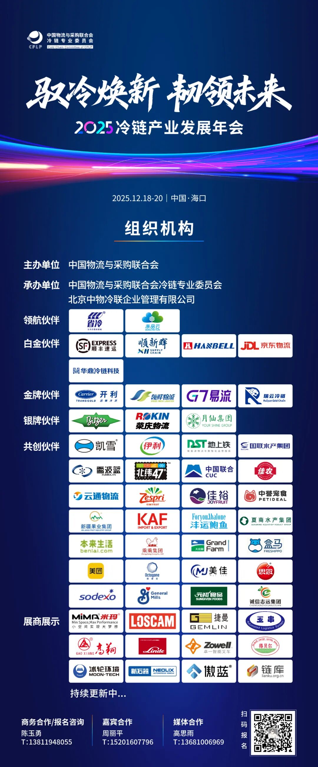 为推动我国冷链产业创新升级与高质量发展,助力构建更具韧性、绿色化和数字化的现代化冷链体系,中国物流与采购联合会冷链专业委员会定于2025年12月18-20日,在海口举办“2025冷链产业发展年会”。