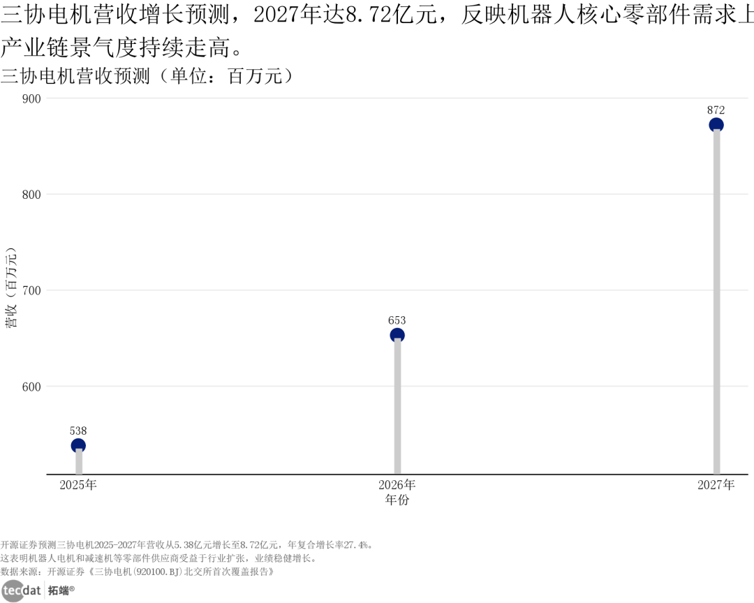 从三协电机的营收增长预测来看,2025-2027年营收呈指数增长趋势,受益于机器人电机需求爆发,业绩弹性显著。
