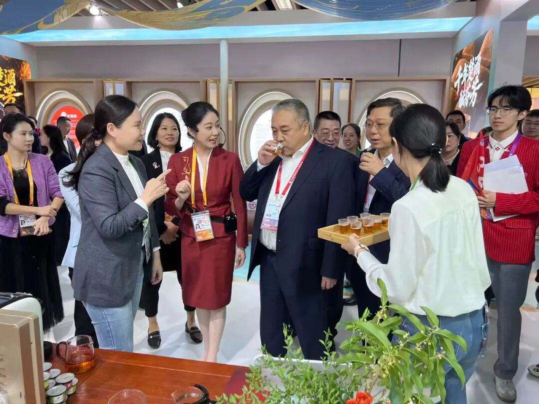 茶业集团不仅传承传统工艺,更勇于创新。此次进博会,他们带来了一系列创新产品,让人眼前一亮。创新的“川”字牌国食健字号产品、调味青(米)砖茶产品,满足了现代人对健康与口味的双重需求。AI泡茶机实现一键标准化出汤,呈现功夫泡效果,让每一泡的茶汤口感都有层次感。“支点湖北 智链全球”,集团正以AI为“支点”赋能千年茶产业,以智能科技为“链”,让楚天好茶香飘世界。现场几款产品荆楚特色尽显。“汉口茶厂”牌西兰卡普系列产品将西兰卡普织锦艺术与恩施玉露、利川红制茶工艺相结合,展现了浓郁的地方文化特色。“汉口茶厂”牌满庭芳产品,包装上飞舞的黄鹤图案,宛如一幅流动的江城风情画。而“汉口茶厂”牌茉莉花茶则以浓郁的花香,淡雅的设计,深受现场嘉宾亲睐。前期首批上市便售罄的爆款新品——乙巳古韵青砖茶与乙巳鸿韵米砖茶也亮相现场,包装上的羊楼洞古街和青石板路让人联想到万里茶道的动人故事。这些近年推出的创新产品融入了荆楚文化的灵感精髓,让每一款产品都承载独特印记,给消费者带来耳目一新的体验。茶业集团积极拓展国际市场,不仅产品销往中亚、欧洲、美洲等重点市场,还推动茶品牌、茶文化输出。2025年,集团全程参与楚天好茶海外行活动,在香港、德国、法国进行专题推介,传播楚天好茶茗片。本届进博会上,茶业集团通过互动品鉴的方式,让中外宾客亲身感受湖北茶的独特魅力。现场观众不仅可以品尝多款获奖的楚天好茶产品,还能了解茶叶的各种花式喝法,解锁茶文化的多种可能性。